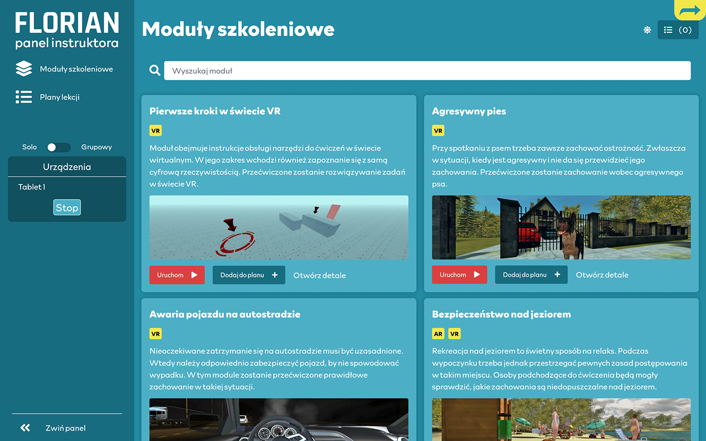 "Powiedz mi, a zapomnę, pokaż mi, a zapamiętam, pozwól mi zrobić, a zrozumiem."Nauka przez praktykę potrafi być skuteczniejsza niż sama teoria, jednak w przypadku zagrożeń niewskazane jest doświadczanie ich na własnej skórze. W takich obszarach doskonale sprawdzi się rzeczywistość wirtualna. Właśnie w tym celu powstał Florian, czyli interaktywny trenażer bezpieczeństwa, który oferuje edukacyjne scenariusze zadaniowe. Choć zostały one przygotowane przede wszystkim z myślą o dzieciach i młodzieży, starsze osoby także mogą wyciągnąć z niego wiedzę na temat odpowiedniego zachowania w niebezpiecznych sytuacjach, takich jak wypadek drogowy czy spotkanie z dzikimi zwierzętami.